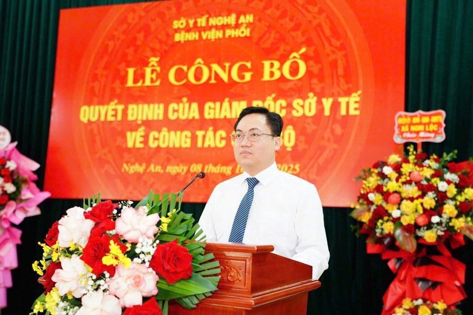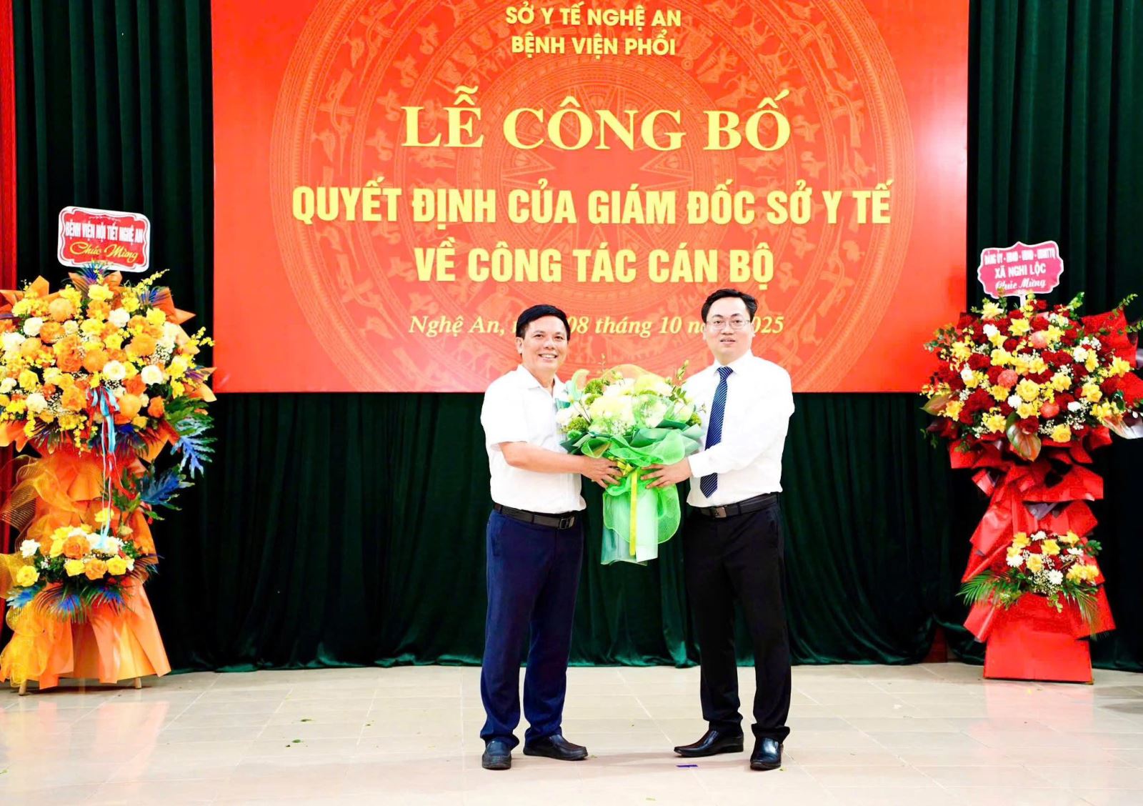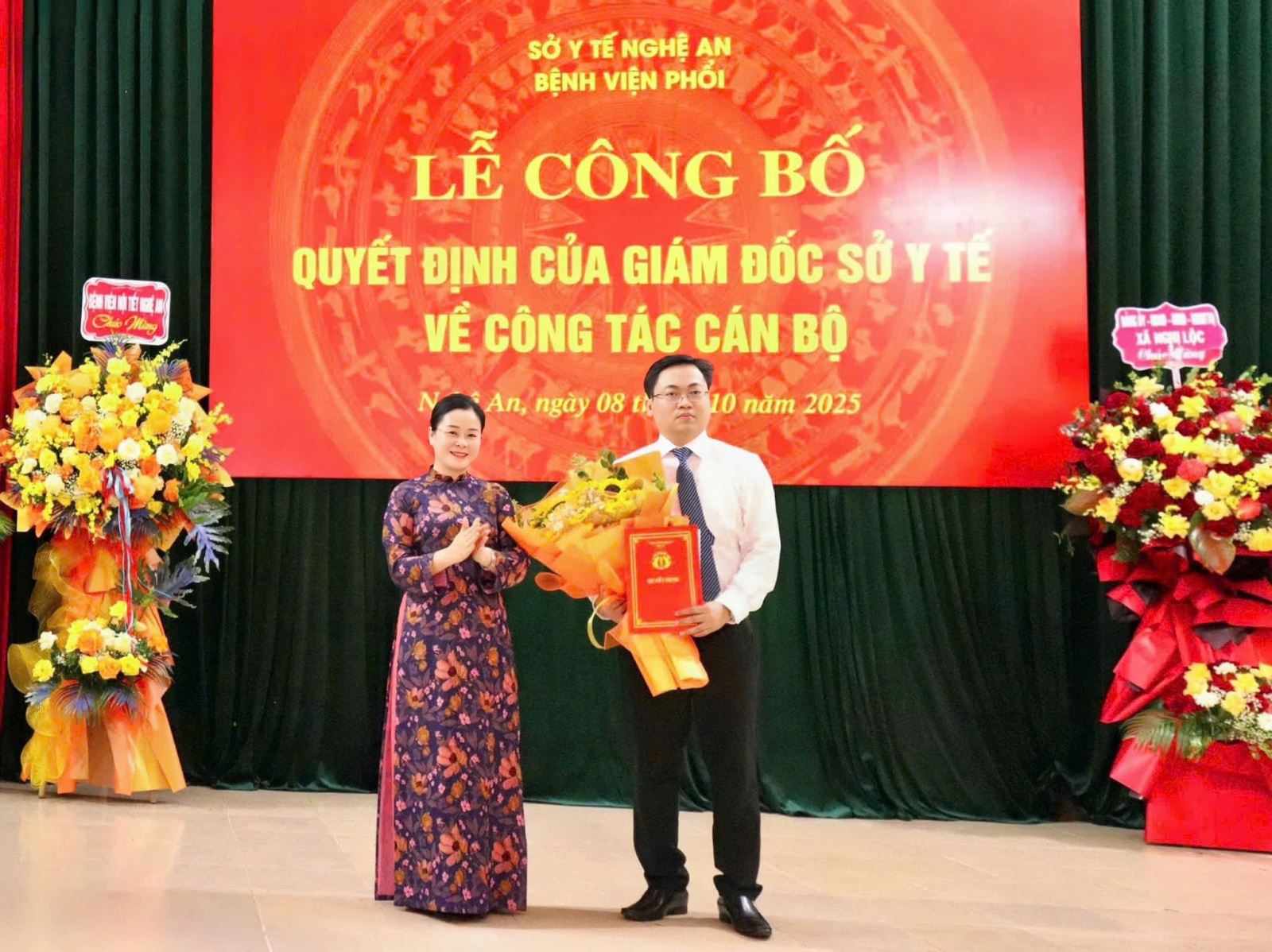 Chiều ngày 8/10/2025, Bệnh viện Phổi Nghệ An đã long trọng tổ chức Lễ công bố Quyết định bổ nhiệm BSCKII Nguyễn Thanh Hải – nguyên Phó Giám đốc Bệnh viện Nội tiết Nghệ An - Chủ tịch Hội Thầy thuốc trẻ Nghệ An giữ chức vụ Giám đốc Bệnh viện Phổi Nghệ An. Sự kiện đánh dấu bước chuyển mình quan trọng của bệnh viện chuyên khoa đầu ngành về Lao và bệnh Phổi trong tỉnh, mở ra một giai đoạn phát triển mới đầy kỳ vọng.