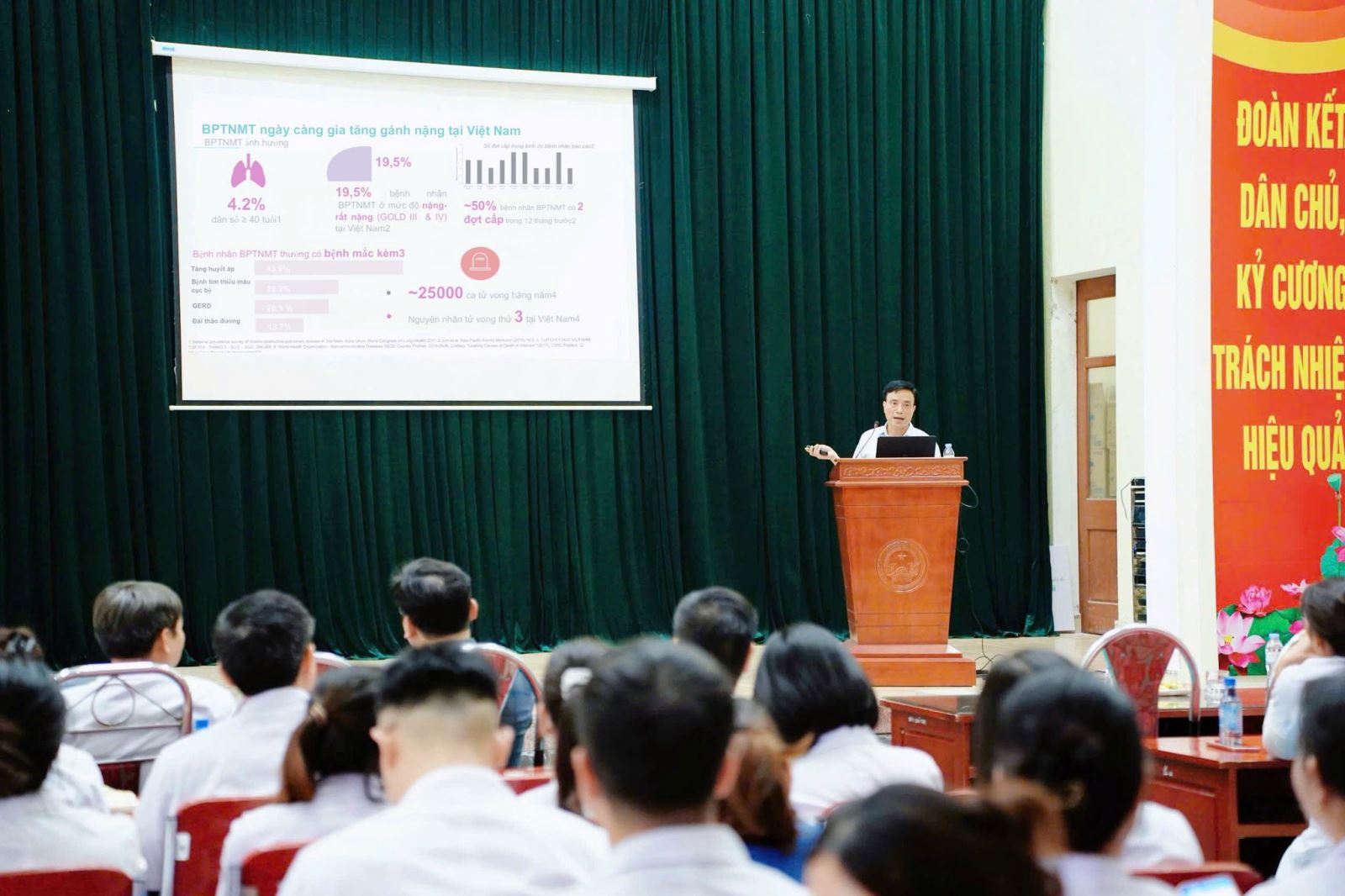 Theo điều tra dịch tễ học, tại Việt Nam, Bệnh phổi tắc nghẽn mạn tính (COPD) hiện là nguyên nhân tử vong đứng thứ 3, cướp đi hơn 25.000 sinh mạng mỗi năm. Đáng chú ý, có 4,2% người dân trên 40 tuổi mắc bệnh, 19,5% ở mức độ nặng – rất nặng và gần 50% người bệnh có ít nhất 2 đợt cấp mỗi năm. Bệnh viện Phổi Nghệ An hiện đang quản lý, điều trị ngoại trú gần 1.300 bệnh nhân COPD, trong đó nhiều trường hợp đã ở giai đoạn nặng, kèm biến chứng phức tạp. Đây là hồi chuông cảnh báo về tình trạng bệnh nhân COPD chưa được quản lý, phát hiện và dự phòng sớm, đòi hỏi sự vào cuộc mạnh mẽ hơn của ngành y tế.