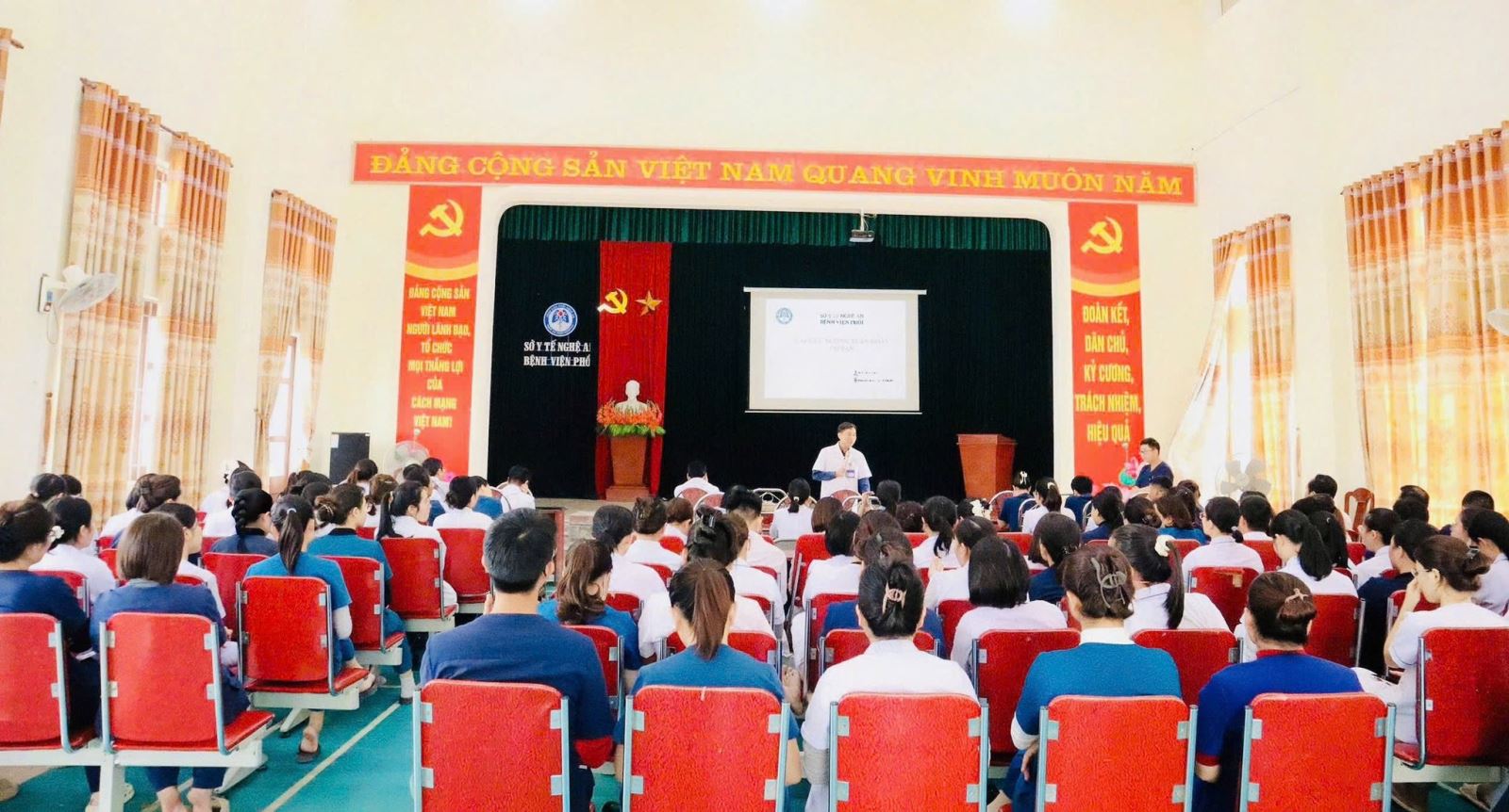 Buổi tập huấn có sự tham gia của BSCKII. Thái Đình Lâm – Phó Giám đốc Bệnh viện; BSCKII. Lương Văn Phùng – Phó Giám đốc Bệnh viện; cùng toàn thể y bác sĩ đang công tác tại đơn vị.