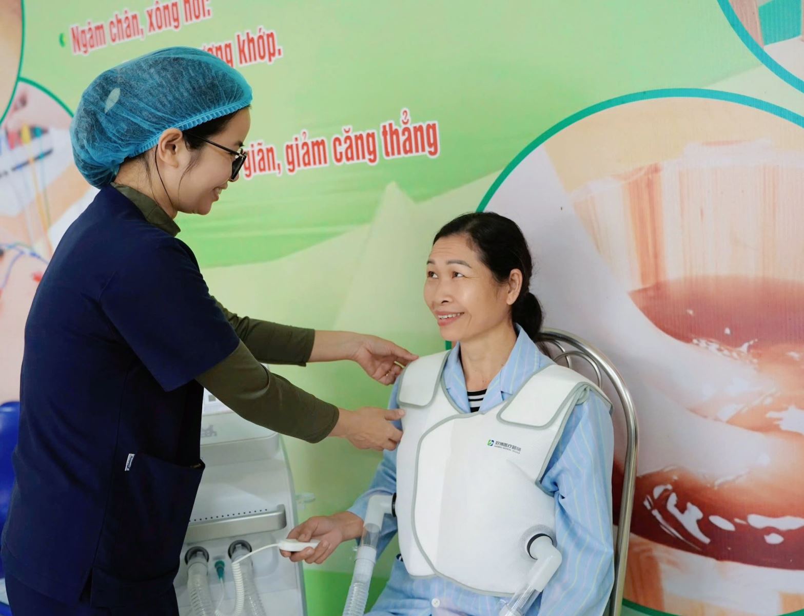 Nhằm nâng cao chất lượng điều trị và phục hồi chức năng hô hấp, Khoa Y học cổ truyền – Phục hồi chức năng, Bệnh viện Phổi Nghệ An đã đưa vào ứng dụng máy vỗ rung lồng ngực hiện đại – thiết bị hiện chưa được triển khai phổ biến trên địa bàn tỉnh Nghệ An.