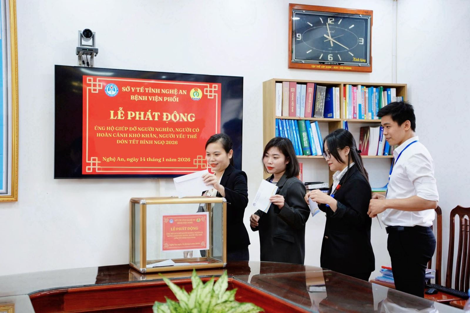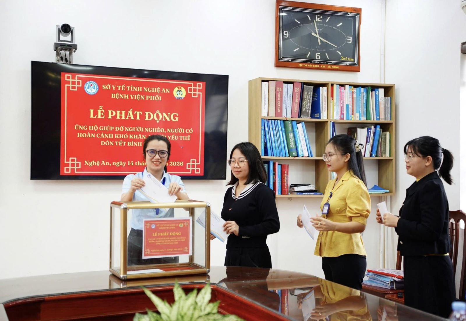 Trước thềm Tết Nguyên đán Bính Ngọ 2026, hưởng ứng các chương trình an sinh xã hội của Ngành Y tế và địa phương, Bệnh viện Phổi Nghệ An đã tích cực tham gia nhiều hoạt động ủng hộ, chăm lo Tết cho người nghèo, người có hoàn cảnh khó khăn trên địa bàn góp phần mang đến một mùa xuân ấm áp, nghĩa tình và đủ đầy.