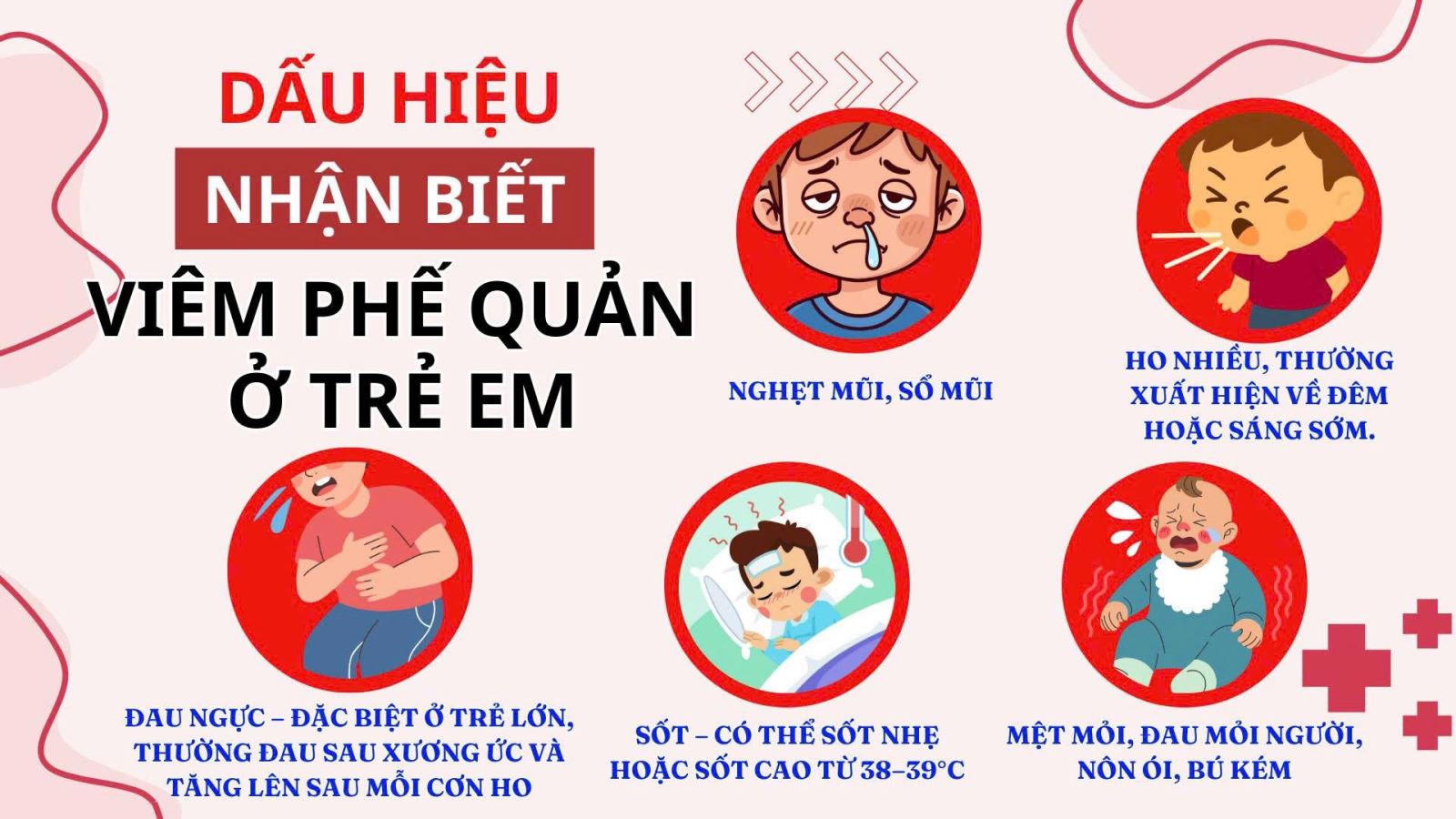 Viêm phế quản cấp ở trẻ em là tình trạng viêm nhiễm cấp tính tại các ống phế quản – nơi dẫn khí từ khí quản vào phổi. Khi bị viêm, niêm mạc phế quản sưng đỏ, tăng tiết dịch nhầy làm hẹp đường thở, gây ra các triệu chứng như ho nhiều, khó thở, thở khò khè, sốt, quấy khóc.