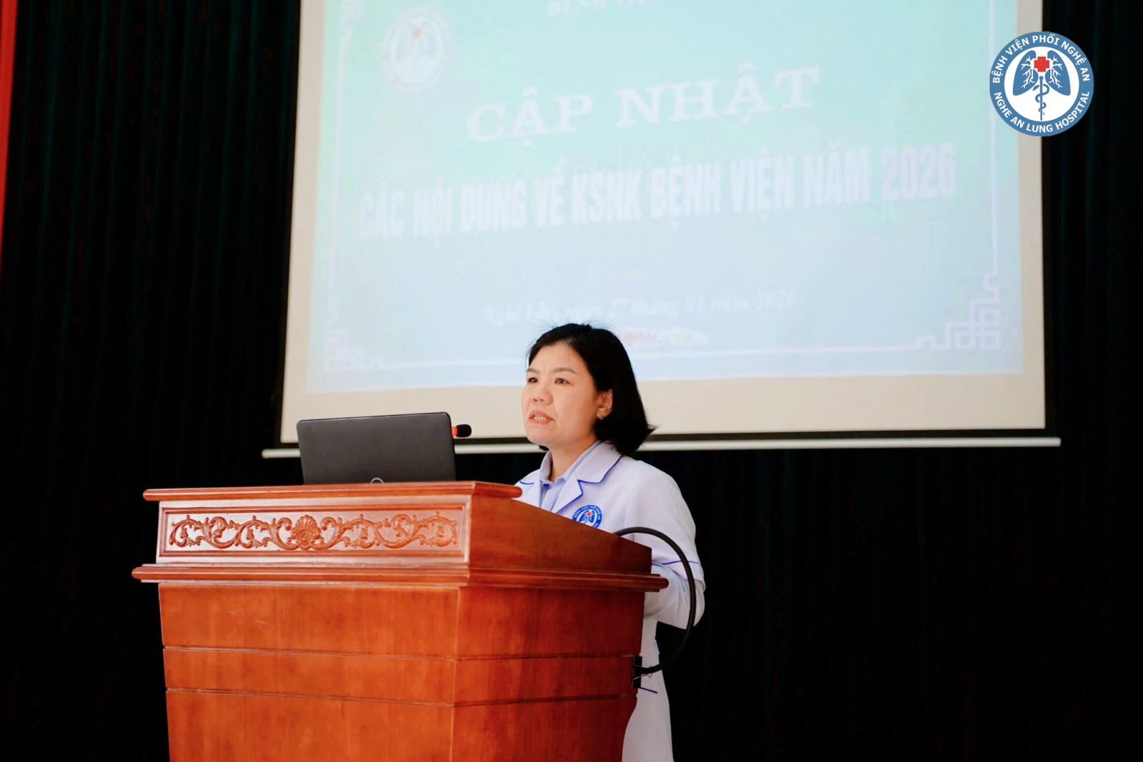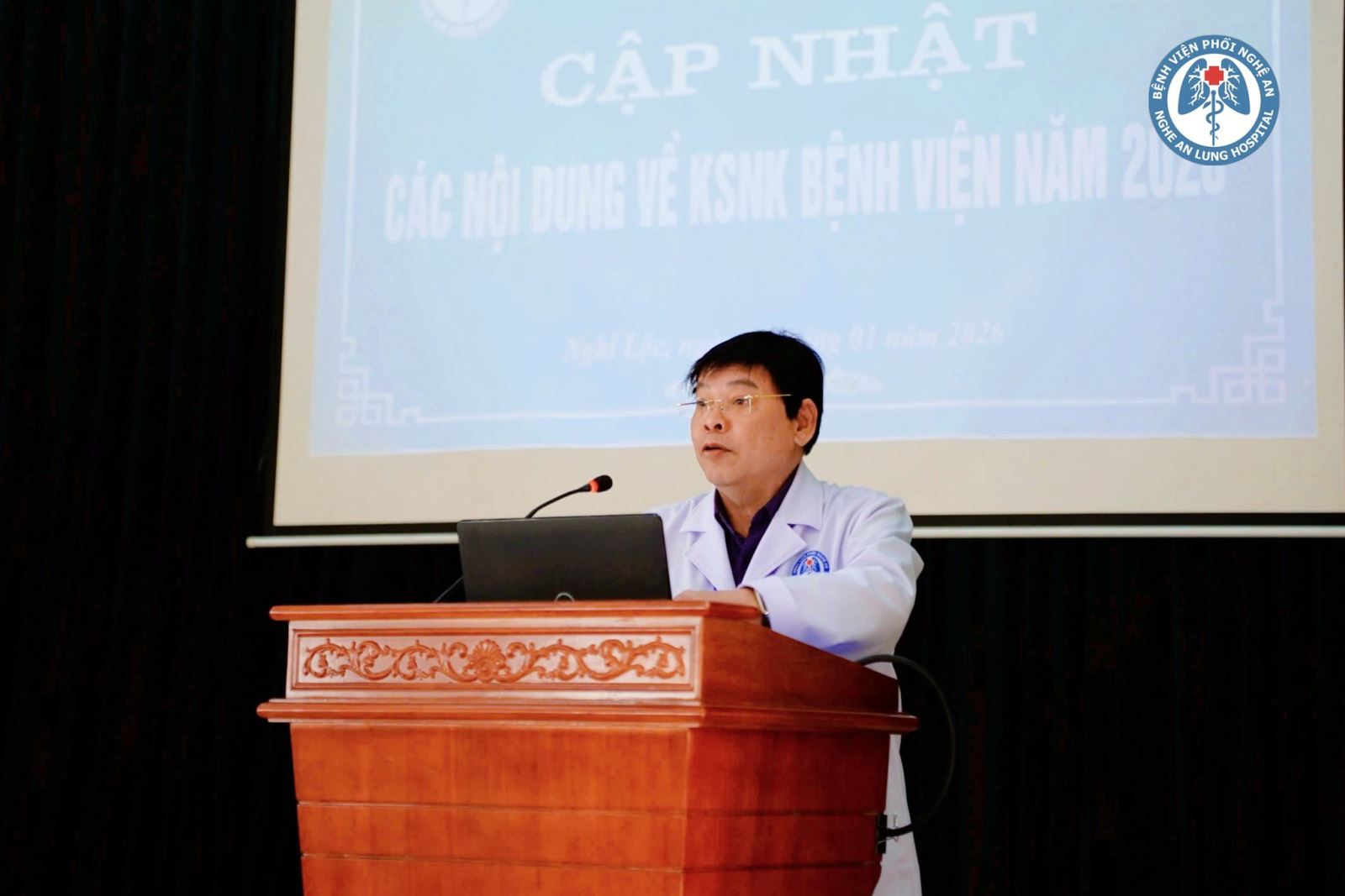 Trong hai ngày 27 và 30/01, Bệnh viện Phổi Nghệ An đã tổ chức lớp tập huấn “Cập nhật các nội dung về kiểm soát nhiễm khuẩn năm 2026” cho toàn thể cán bộ, viên chức và người lao động trong đơn vị.