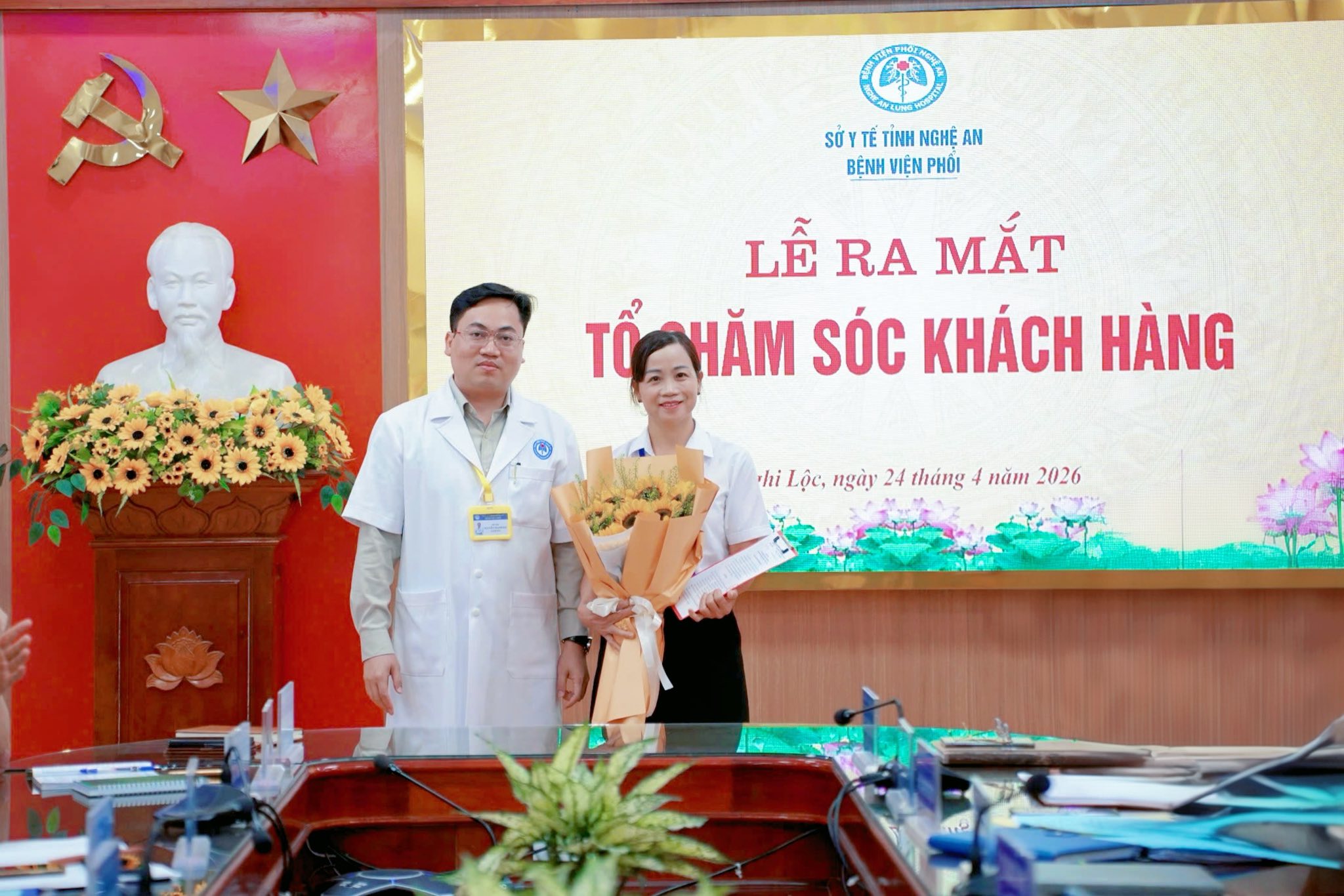 Chiều 24/4, Bệnh viện Phổi Nghệ An tổ chức lễ ra mắt Tổ Chăm sóc khách hàng, đồng thời khen thưởng cho các cá nhân tiêu biểu quý I/2026 theo quyết định của Bệnh viện.