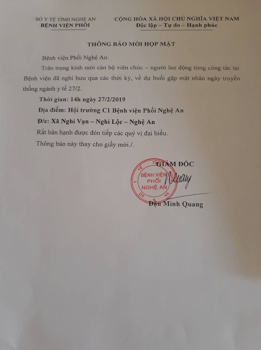 Thông báo mời họp mặt nhân ngày truyền thống ngành y 27/2/