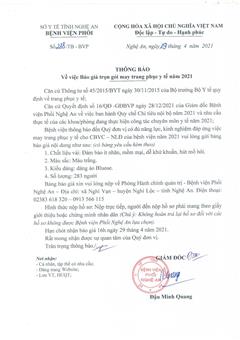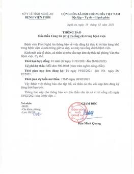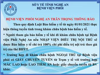 Thông báo về việc khám chữa bệnh năm 2021 tại bệnh viện Phổi Nghệ An... [ Xem thêm ]