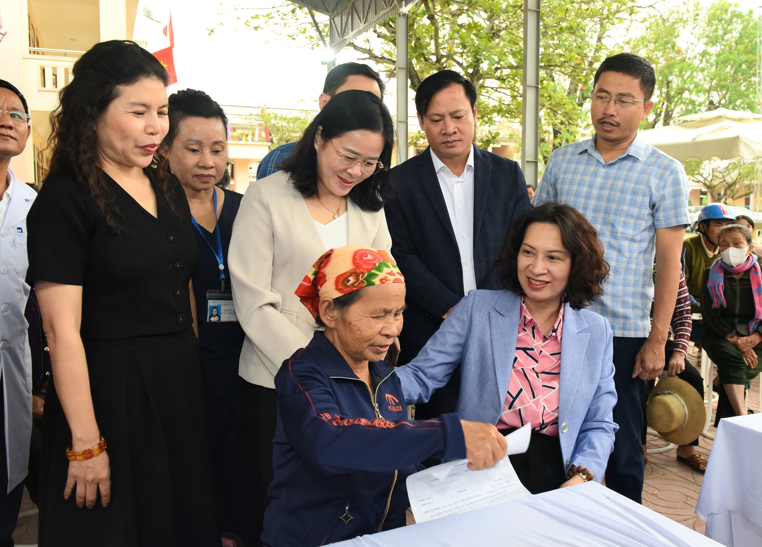 Giám đốc Sở Y tế Nghệ An Lê Thị Hoài Chung đã bày tỏ sự trân trọng trước sự quan tâm sát sao Bộ Y tế, Hội Thầy thuốc trẻ Việt Nam, các đơn vị đồng hành dành cho nhân dân xã An Châu.