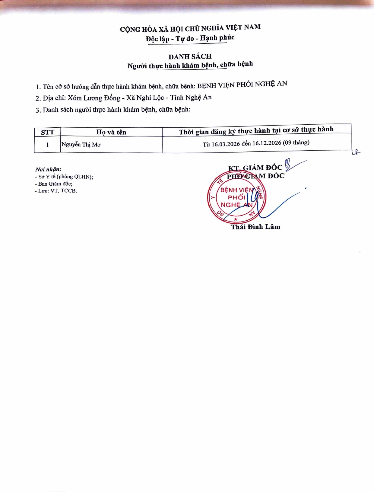 Danh sách người thực hành khám bệnh, chữa bệnh từ ngày 16/03/2026 đến ngày 16/12/2026
